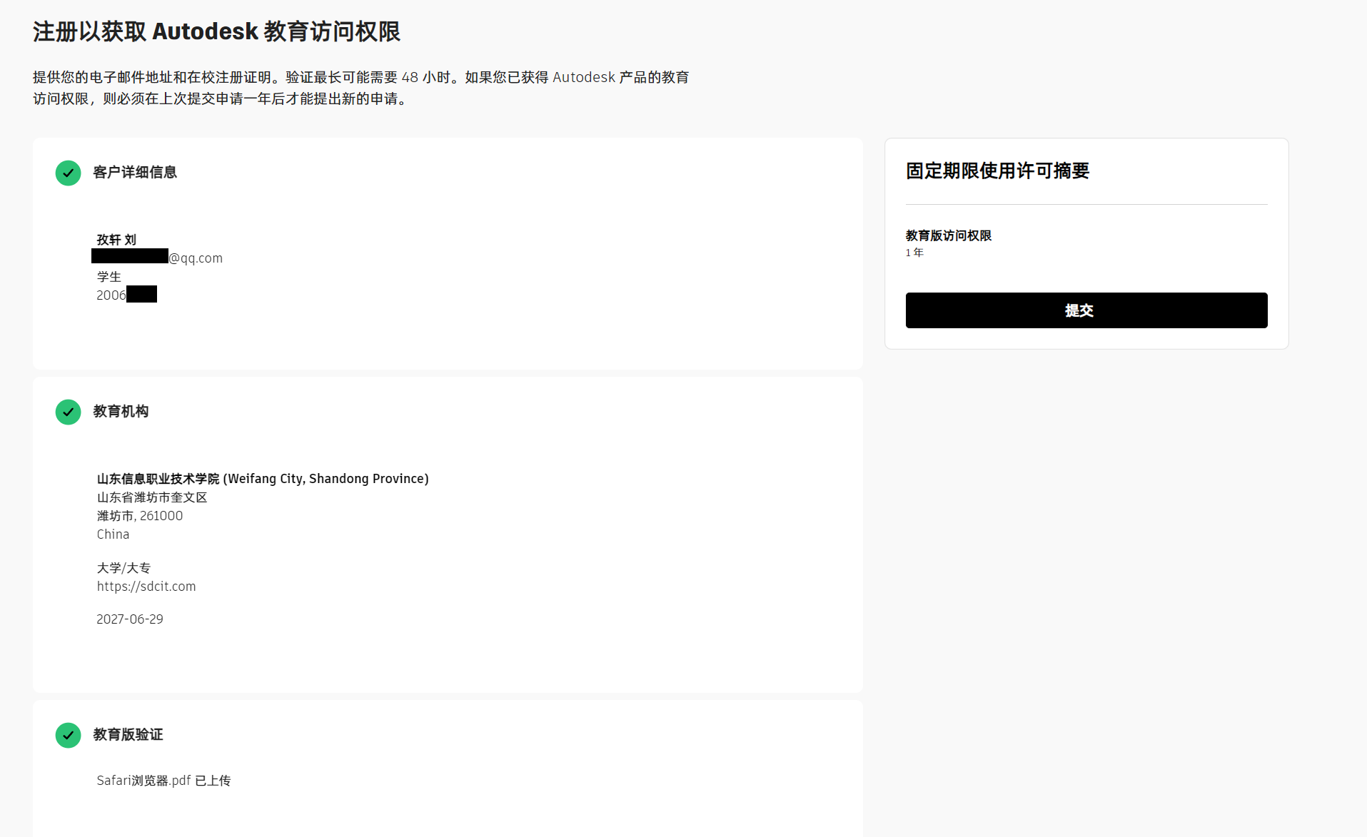 3DMAX正版教育优惠获取方法1.去Autodesk官网注册一个包含你真实信息的账号Autodesk empowers innovators everywhere to make the new possibleAutodesk is a global leader in design and make technology, with expertise across architecture, engineering, construction, design, manufacturing, and entertainment.https://www.autodesk.com.cn/名称这里建议就使用你的真实姓名即可,注册时候需要的邮箱,有邮箱的自己用邮箱就行,没有的话,请使用qq邮箱(qq账号@qq.com)2.进入下面的网址获取教育优惠对 Autodesk 教育版下载的学生访问权限探索面向学生、教师和教育机构的免费 Autodesk 软件。下载您喜欢的 Autodesk 软件,包括 AutoCAD、Revit、Fusion 等。https://www.autodesk.com.cn/education/edu-software/overview选取你需要的产品(3DMAX),然后开始认证即可务必如实填写你的信息,学校信息如下第三个是最重要的,要上传你的辅助验证材料这里我们直接使用你学信网的在线验证报告即可,请将验证报告设为有效获取步骤如下:验证报告你可以选择将下图报告保存为图片/PDF均可然后提交即可,完成提交应该是如下图状态实际认证时间没那么长,我这次续订从15:38-15:46 8分钟左右就完成了成功通过验证后你会在邮箱里接到通知,这时就可以去获取正版软件啦这里以CAD举例最后欢迎你来到我的博客Betsy Blog - 分享网络技术、服务器部署、Unity开发、AI技术应用与原理Betsy 的技术博客,分享网络技术、服务器部署、Unity游戏开发、AI技术应用与原理等领域的原创技术文章与实战教程。https://www.micostar.cc